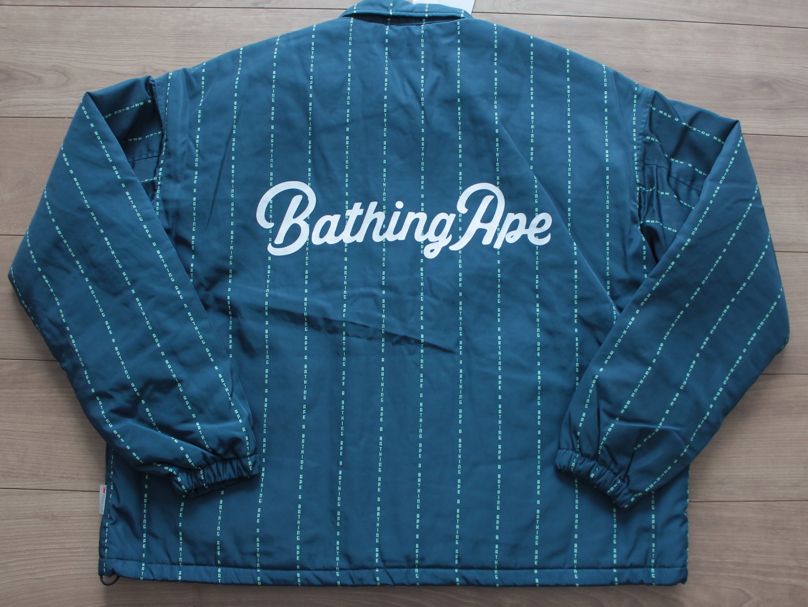 A BATHING APE BAPE TEXT STRIPE RELAXED COACH JACKET